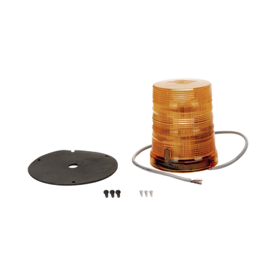 Estrobo color ámbar 200TCA 12-24 Vcc 2 Amp 16.8 x 14 cm con doble flasheo y un resistente domo de policarbonato. Ideal para señalización de advertencia y montaje permanente, proporcionando alta confiabilidad en su funcionamiento.
