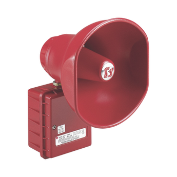 El cono del altavoz y el proyector están fabricados con aluminio hilado resistente. El circuito amplificador de estado sólido está protegido en una carcasa de aluminio fundido. Las juntas a prueba de polvo y humedad brindan protección contra los elementos. Todas las superficies externas están selladas con pintura en polvo roja.