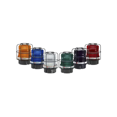 - Los modelos de un solo color están disponibles con LED/lentes ámbar, azul, transparente, verde, magenta o rojo, y tienen tres patrones de flash