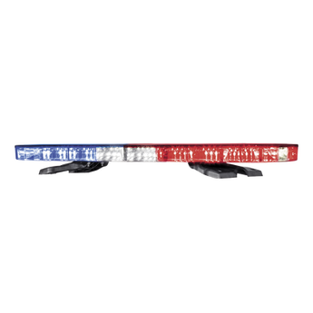 Torreta de 45”, con 4 módulos esquineros de 6 LED Ìs c/u rojo/ azul en la parte frontal y rojo/ azul en la parte trasera, 4 módulos de 4 LED Ìs c/u rojo/ azul en la parte frontal, 6 módulos ámbar de 4 LED Ìs c/u en la parte trasera (Signalmaster), 2 luces callejoneras (AL LED), 2 luces de penetración (TD LED), con montaje de gancho.