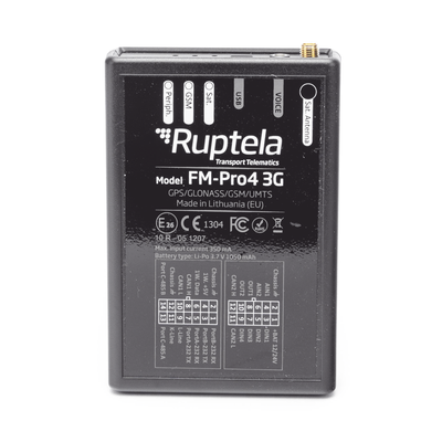 Localizador vehicular avanzado PRO43G de RUPTELA, con dimensiones de 111 x 75 x 25 mm, operación de -35 a +70 °C, y un rango de alimentación de 10 ÷ 32 VDC. Este dispositivo cuenta con protección contra interferencias y seguimiento de comportamiento de conductores, permitiendo además el monitoreo en tiempo real de vehículos pesados para mejorar la eficiencia del combustible.