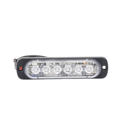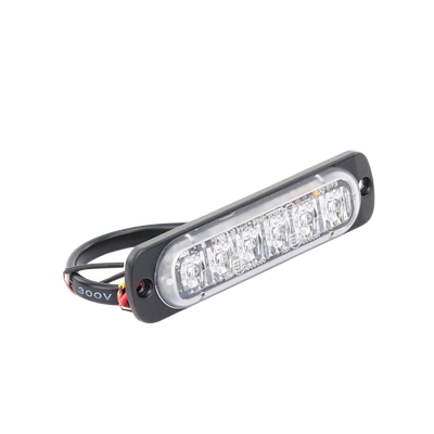 Luz auxiliar SP6B 6 LED alto brillo IPX7 23 patrones de destello, diseño resistente a la intemperie. Cumple ECE R65 y SAE J595 Clase 1. Con 6 LED de alta potencia y 23 patrones de destello, su voltaje de 12 ~ 24VCD permite un promedio de corriente de 0.5A, logrando visibilidad superior en emergencias. Su perfil bajo de 0.35” y su instalación rápida con adhesivo 3M la hacen ideal para vehículos de rescate.