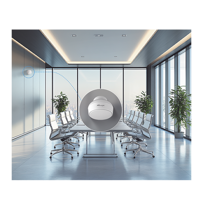 Sensor presencia y movimiento VS370915M de MILESIGHT, tecnología radar y PIR adaptado para salas de reuniones. Alta precisión en la detección de ocupación. Uso interior. Instalación fácil. Diseñado para evitar interferencias. No compromete la privacidad del usuario.