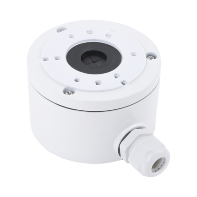 Caja de conexiones extra grande DS-1280ZJ-XS-BAX, 46%25 más grande que el modelo estándar, fabricada en aleación de aluminio. Dimensiones de Φ100 x 63 x 129 mm, carga máxima de 4.5 kg. Ofrece un espacio amplio para el transceptor y un diseño robusto que asegura una mejor gestión del cableado y conexiones.