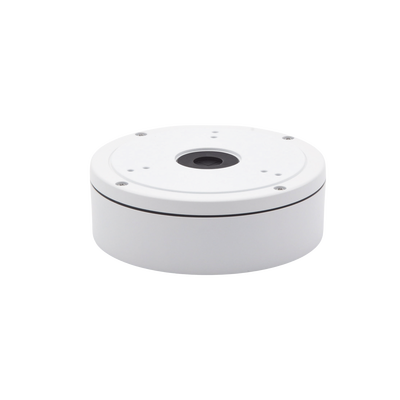 Caja de conexiones exterior DS-1280ZJ-M de HIKVISION, fabricada en aleación de aluminio con un acabado blanco. Sus dimensiones son Φ157 x 185 x 51.5mm y tiene un peso de 621g. Diseñada con un estilo a prueba de agua, proporciona conexiones seguras y resistentes a la intemperie.