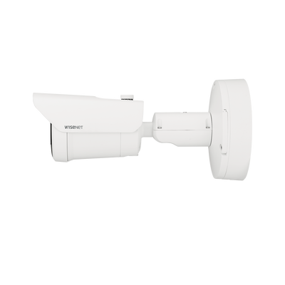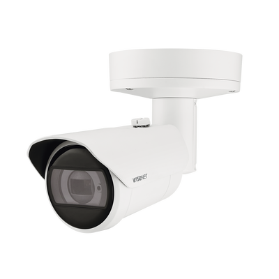 La Cámara Bala IP 4K XNO-C9083R de Hanwha Techwin ofrece resolución 4K (8MP) y un lente motorizado de 4.4 a 9.3mm. Proporciona compresión H.265, con iluminación mínima de 0.04Lux y WDR 120dB. Su diseño robusto incluye protección IP67, IK10, y NEMA4X, ideal para videovigilancia en diversos entornos.