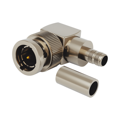 Conector BNC macho ángulo recto RFB-1710-K 75 ohm níquel oro 25 mm anillo plegable conexión fácil. Este conector de alta calidad cuenta con una impedancia de 75 Ohm, es de tipo BNC macho con diseño en ángulo recto, ensamble mediante anillo plegable, y está construido con cuerpo de níquel, contacto de oro y dieléctrico de teflón. Su diseño optimiza el espacio en instalaciones profesionales y técnicas.