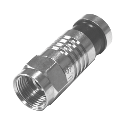 Conector F Macho Plegado Axial por Compresión para RG-59/U, Níquel, Banda Negra.
