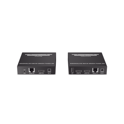 La principal característica de este kit es su capacidad para extender la señal HDMI 4K@60Hz hasta 120 metros utilizando cables de red de categoría 6 o superiores. Este kit admite diferentes tipos de conexiones, como conexiones uno a uno o uno a muchos a través de un conmutador gigabit o en cascada. Una ventaja adicional es que este kit extensor cuenta con bucle HDMI, KVM y paso a través de RS-232. Esto significa que se pueden conectar y controlar dispositivos adicionales, como monitores, teclados y mouse.