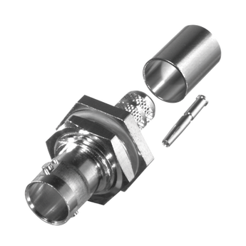 Conector BNC Hembra para Chasis en D-Plano con Aro de Goma, Anillo Plegable para RG-6/U y Grupo Q, 75 Ohm, Níquel/ Oro/ Teflón.