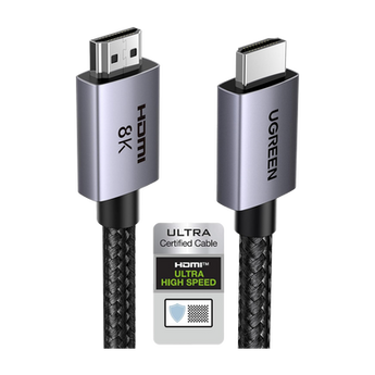 El Cable HDMI 8K 25911 de UGREEN es la solución perfecta para conexión de audio y video en alta definición. Con soporte para 8K@60Hz, 48Gbps, HDR10+, y eARC, este cable asegura una experiencia visual increíble. Sus características incluyen un diseño de nylon trenzado y carcasa de aluminio, garantizando durabilidad. Ideal para sistemas de cine en casa y consolas de videojuegos, ofrece calidad superior en audio y video.