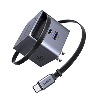 CARGADOR RÁPIDO UGREEN 45W GAN CON CABLE RETRÁCTIL