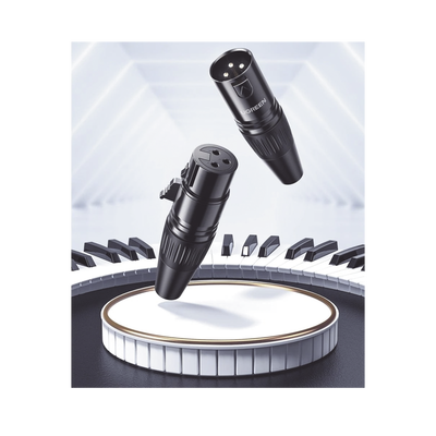 Conector de audio XLR hembra 80440, material PVC, ABS y aleación de zinc, aguja de oro de 24k, apertura ajustable de 6 a 7 mm, diseño listo para soldar. Características antioxidantes y anticaída, interruptor de bloqueo confiable, ideal para estudios y presentaciones en vivo.