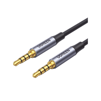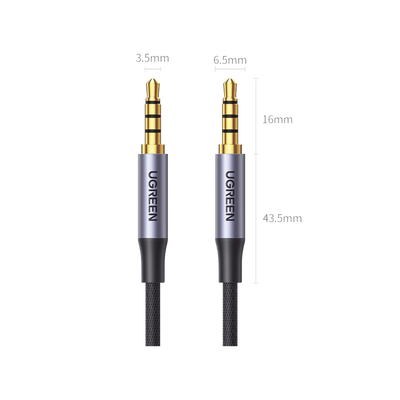 El Cable Auxiliar de 3.5mm de UGREEN, modelo 90788, tiene una longitud de 2 metros y permite conectar dispositivos con micrófono. Su núcleo de alambre de cobre esmaltado y carcasa de aluminio azul trenzado garantizan durabilidad y минимización de interrupciones. Con conectores chapados en oro de 24K y un año de garantía, es ideal para quienes buscan calidad de audio y resistencia.