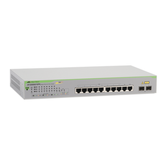 Switch Poe+ AT-GS950-10PS-10 10 puertos 10/100/1000 mbps 2 puertos sfp gigabit 75 w VLAN hasta 256 grupos QoS clasificación