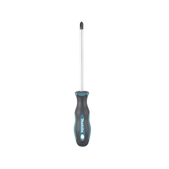 Desarmador PH3 B65931 de MAKITA, fabricado en acero cromado vanadio, mango ergonómico de goma, ideal para trabajos de carpintería y mecánica. Cuenta con barra hueca para apretar tuercas y función de imán que retiene la tuerca. Perfecto para uso prolongado gracias a su durabilidad y comodidad.