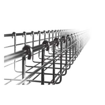 Charola tipo malla CH-105-150EZ, ancho 150 mm y peralte 105 mm, con tramo de 3 m y acabado Electro Zinc (EZ). Su diseño tipo malla permite un manejo óptimo de cables y acceso fácil para cambios y reparaciones. Elimina el caos de cables de manera eficiente y es ideal para interiores.