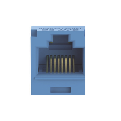 Conector jack RJ45 estilo TG CJ5E88TGBU categoría 5e color azul cumple IEC 60603-7 admite alimentación HDBaset 100 watts no requiere herramienta de impacto tapa codificada por color etiqueta universal T568A T568B