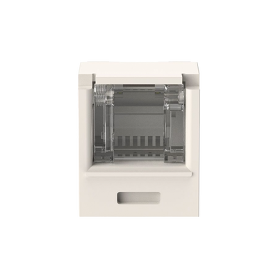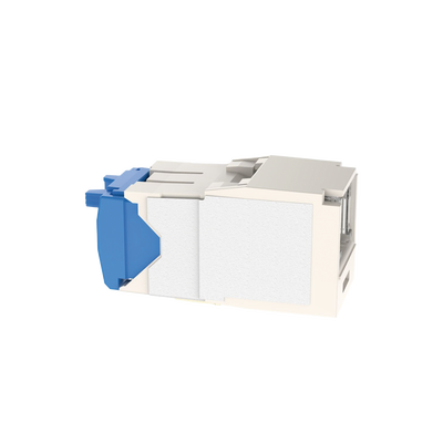 El módulo de conector UTP Categoría 6A/Clase EA de 8 posiciones, se termina en cable de 4 pares 22 - 26 AWG de par trenzado sin blindaje de 100 ohms y no requiere el uso de una herramienta de impacto. Los módulos de conector UTP usan un método de terminación de movimiento hacia adelante para optimizar el rendimiento al mantener la geometría del par de cables mientras se elimina el destrenzado del conductor. La tapa de terminación esta codificada por color blanco para designar el rendimiento de la Categoría 6A e incluye una etiqueta universal codificada para los esquemas de cableado T568A y T568B.