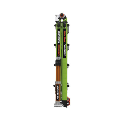 El Conquest All-Terrain está equipado con estabilizadores ajustables que agregan estabilidad lateral y capacidad de nivelación de las piernas, para que pueda trabajar con seguridad incluso en los terrenos más difíciles.