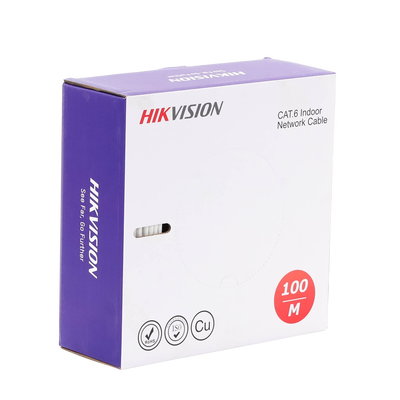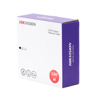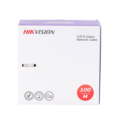 Descubre la Bobina de Cable UTP 100 mts DS-1LN6USC0-100 de HIKVISION. Ideal para Redes de Voz, Datos y Video. Con conductores de 100%25 cobre, calibrados a 23 AWG, y una frecuencia de 250 MHz. Perfecto para aplicaciones de CCTV IP y Redes de datos. Aprobado por UL y ANSI/TIA, apto para instalaciones interiores en casas y oficinas.