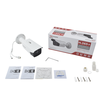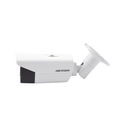 Cámara de vigilancia DS-2CD2T43G0-I5, 4 megapíxeles, lente de 4 mm, IP67, con infrarrojo hasta 50 mts y WDR 120 dB. Destaca por su resolución de 2560 x 1440, excelente rendimiento en bajas condiciones de luz (0.01 Lux), y compresión H.265+ para optimizar almacenamiento y ancho de banda.