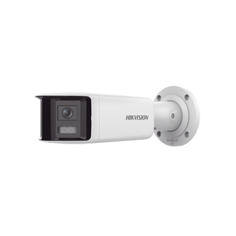 Cámara de seguridad DS-2CD2T46G2P-ISU/SL(C) 4 megapixel con visión panorámica de 180°. Ofrece 40 mts de infrarrojos, audio bidireccional y protección IP67 para exteriores. Ideal para vigilancia en interiores y exteriores.