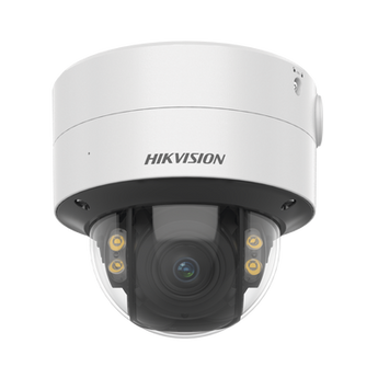 Cámara domo IP 4 megapixel DS-2CD3747G2T-LZSU(C) imagen a color 24/7 lente 2.8 a 12 mm rango de luz blanca 40 mts tecnología acusense detección de cuerpos humanos