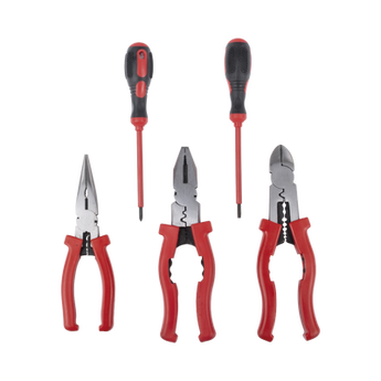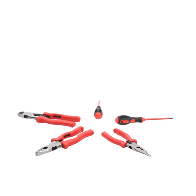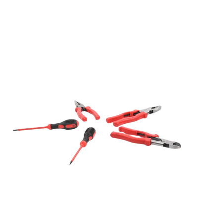 Kit de herramientas aisladas EPNTK10 de EPCOM POWERLINE, incluye 5 piezas: pinzas de corte, planas y de punta, junto a desarmadores de distintas medidas. Fabricado en acero de alta resistencia con mango ergonómico, su diseño compacto permite fácil almacenamiento y facilita tareas de precisión en eléctricos.