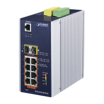 Switch industrial IGS-6325-8UP2S 8 puertos gigabit poe 802.3bt+ potencia de 90W. Ofrece modo de salida de 90W, UPOE/Poh 95W, y 30W en su tramo final. Dispone de 8 puertos 10/100/1000BASE-T y 2 ranuras SFP. Monitoreo de PD conectado y programación de ahorro de energía.