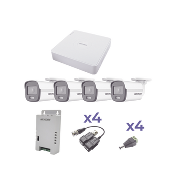 Kit de vigilancia KESTXLT4BC DVR pentahíbrido 4 cámaras 1080p visión remota hik-connect cámaras exteriores resistentes. Incluye DVR que soporta HD-TVI, HD-CVI, Analógico, IP y AHD. Soporta video en 1080p lite y visualización remota a través de Hik-Connect. Fácil instalación con regleta de conexión incluida y cámaras de uso exterior de 105° de ángulo de visión.