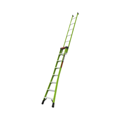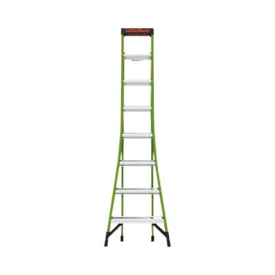 Es el sueño de un electricista hecho realidad. Fabricado con fibra de vidrio ligera y duradera, puede trabajar cerca de la electricidad sin temor a la conductividad. El color verde de alta visibilidad también promueve una mayor visibilidad para disminuir los golpes de la escalera.