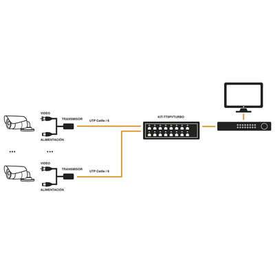 Kit de transmisión de alimentación y video KIT-TT-16-PV-TURBO 250 m 36 vcc 150 w transmisión en tiempo real instalación fácil