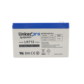 La Batería 12V 7Ah LK712 de LINKEDPRO BY EPCOM es ideal para sistemas de seguridad y respaldo. Con voltaje de 12V, capacidad de 7Ah y terminal F1 (incluye adaptador F2), esta batería AGM sellada ofrece una vida útil promedio de 5 años y construcción a prueba de derrames, proporcionando energía confiable y estable sin necesidad de mantenimiento.