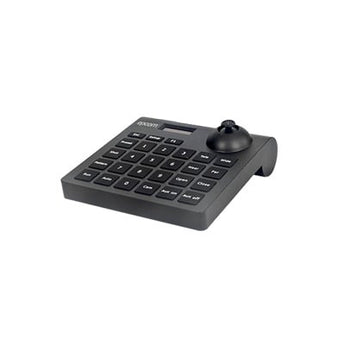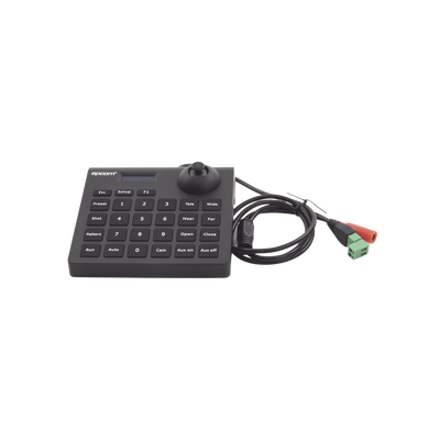 Teclado controlador PTZ M-360K RS-485 12vcc 130x135x15~30mm con joystick ergonómico. Interfaz RS-485, compatible con Pelco-D, Pelco-P, Hikvision y Dahua. Alimentado a 12Vcc, robusto y resistente a impactos. Controla movimientos Pan/Tilt y presets para optimizar la vigilancia.