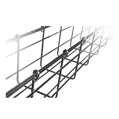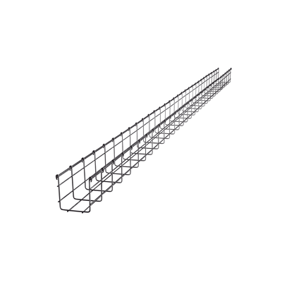 Charola tipo malla MG-50-441EZ, ancho 100 mm y peralte 116 mm, con un tramo de 3 m. Su acabado Electro Zinc garantiza durabilidad y es ideal para mantener cables organizados, ofreciendo fácil acceso para cambios y reparaciones.