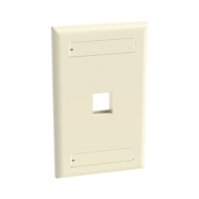 Placa de pared vertical NK1FEIY, 1 puerto keystone color marfil. Fabricada en material ABS con diseño plano, optimiza el espacio y se integra fácilmente. Incluye etiqueta para organización y cumple con la norma RoHS.