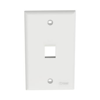 Placa de pared vertical NK1FNWH 1 puerto keystone color blanco, fabricada en ABS duradero. Con dimensiones de 69.8 x 114.3 mm, cuenta con un diseño plano que se integra en cualquier entorno y permite una instalación simple y rápida, facilitando la organización de cables y conexiones.