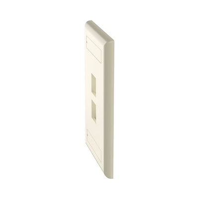 Placa de pared vertical NK2FEIY color marfil 2 puertos 69.8 x 114.3 mm, fabricada en ABS, con diseño plano y vertical que optimiza el espacio. Ideal para instalaciones de red, cuenta con 2 puertos keystone y proporciona una apariencia organizada.