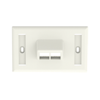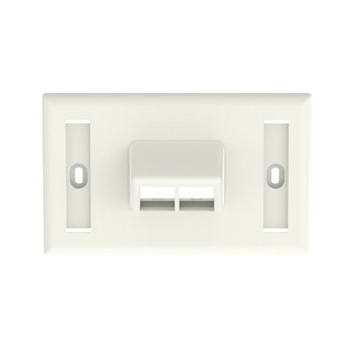 Placa de pared horizontal NK2HSFIWY de PANDUIT en color blanco mate. Diseño plano y elegante. Dimensiones: 69.8 x 114.3 mm. Fabricada en ABS resistente, con 2 puertos para módulos Keystone. Ideal para instalación sencilla en oficinas y hogares inteligentes.