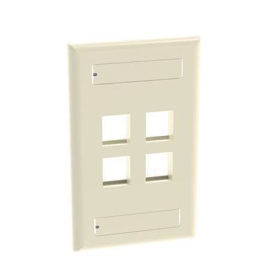 Placa de muro vertical NK4FEIY de PANDUIT, diseño plano que se ajusta a diversos entornos. Con color marfil y material ABS, cuenta con 4 puertos Keystone y 4 espacios para módulos. Ideal para montaje vertical y garantiza una gestión ordenada de conexiones.