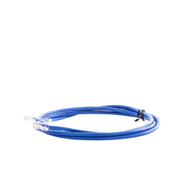 Cable de parcheo UTP NK5EPC7BUY de 2 m, categoría 5e sin blindaje, color azul con plug modular en ambos extremos. Cuenta con una clasificación de 24 AWG y cumple con normativas internacionales como RoHS y UL 1863. Este cable ha sido probado al 100%25 y ofrece una variedad de colores y longitudes disponibles, brindando confianza en su rendimiento en instalaciones de red.