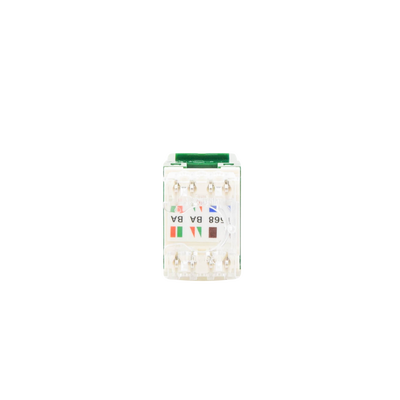 Conector jack estilo 110 NK688MGR Categoría 6 8 posiciones Color verde Módulo de alta calidad y diseño de impacto. Tipo: Módulo Jack de cobre, Color: Verde, Nivel de desempeño: Categoría 6/Clase E, Estilo de terminación: De impacto, Tipo de conexión: 110. Este conector permite conexiones de red rápidas y seguras y es compatible con esquemas de cableado T568A y T568B.