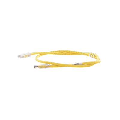 Cable de parcheo UTP categoría 6 NK6PC3YLY de PANDUIT, con una longitud de 1 m, color amarillo. Este cable de cobre cuenta con conectores RJ45 y cumple con normas internacionales como RoHS y UL 1863. Proporciona un rendimiento de clase E y tiene una clasificación de flamabilidad CM. Ideal para conexiones en oficinas, hogares y centros de datos.