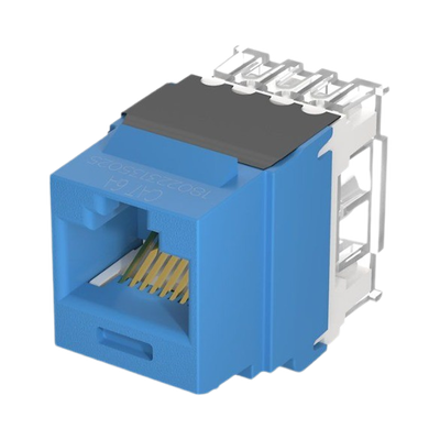 Conector Jack categoría 6A NK6X88MBU azul 8 posiciones, módulo keystone diseñado para cables de par trenzado. Tipo: Módulo Jack de cobre, Color: Azul, Nivel de desempeño: Categoría 6A, Estilo de terminación: De impacto, Esquema de cableado: T568A/T568B. Garantiza una conexión de red de alta calidad y velocidad.
