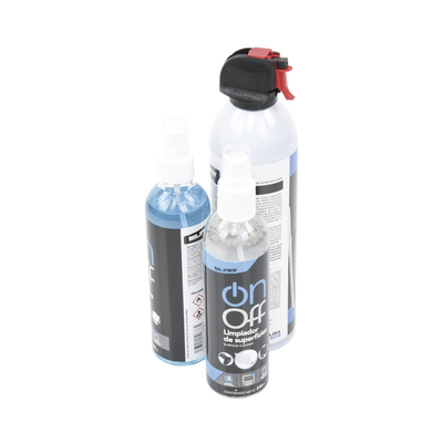 Kit de limpieza ON-OFF-CLEANER-PACK incluye 4 productos especializados: loción limpiadora (250 ml), limpiador de pantallas (250 ml), removedor de polvo (660 ml) y 2 microfibras de 30x30 cm. Perfecto para la limpieza de superficies y accesorios electrónicos. Su aplicación es fácil gracias a su formato en aerosol y es ideal para mantener tus dispositivos en óptimas condiciones.