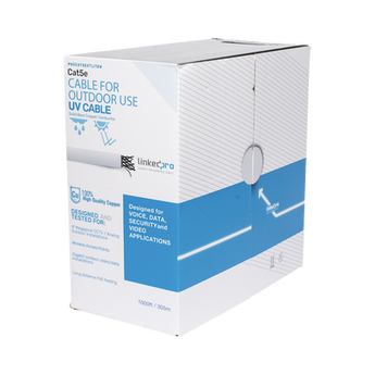 Cable de red bobina de 305 m PRO-CAT5-EXT-LITEW-V2 100%25 cobre UTP 24 AWG resistente a intemperie aplicaciones de alta velocidad. Conductor de 100%25 cobre, aislamiento PVC, color exterior blanco y longitud de 305 m (1000 ft). Ideal para instalaciones de CCTV IP Megapixel y para redes locales de alta velocidad. Posibilidad de enviar energía a través de PoE en largas distancias.