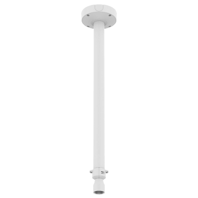 Montaje de techo SBP-300CMTW Ø180 x 956.5 a 1667.5mm en color blanco, con capacidad de carga de 20kg. Este montaje telescópico, fabricado en aluminio de alta resistencia, es compatible con cámaras domo de Hanwha, lo que asegura una instalación firme y segura para diversas aplicaciones de videovigilancia.