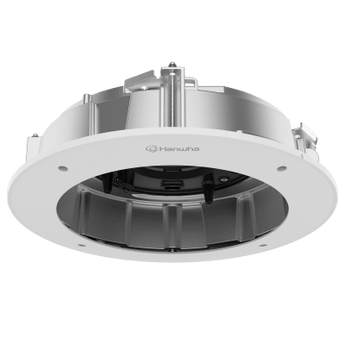Montaje de plafón SHD-2500FPW, hecho de aluminio, con dimensiones de Ø352 x 107.4 mm y un peso de 2,450 gr. Este soporte ligero es ideal para instalación fácil de cámaras PNM-C16083RVQ y PNM-C32083RVQ. Ofrece una construcción robusta y un orificio de techo de Ø326 mm, garantizando durabilidad y precisión en la instalación.