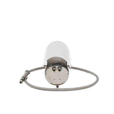Gabinete para cámaras SHL-7113-04 acero inoxidable IP68 hasta 80ºC ventilación aire manguera incluida. Fabricado en acero inoxidable, soporta IP68, cuenta con bracket semi-fijo, dos entradas de 10 mm para cableado y una válvula de aire G1/4%22. Ideal para ambientes industriales exigentes.